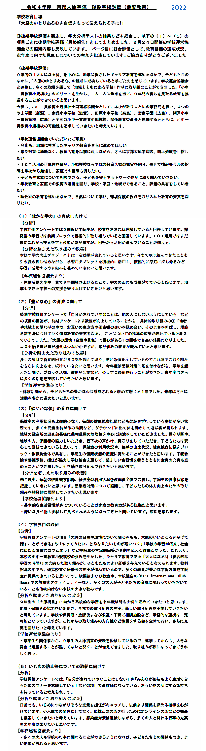 学校評価 2022年 実施