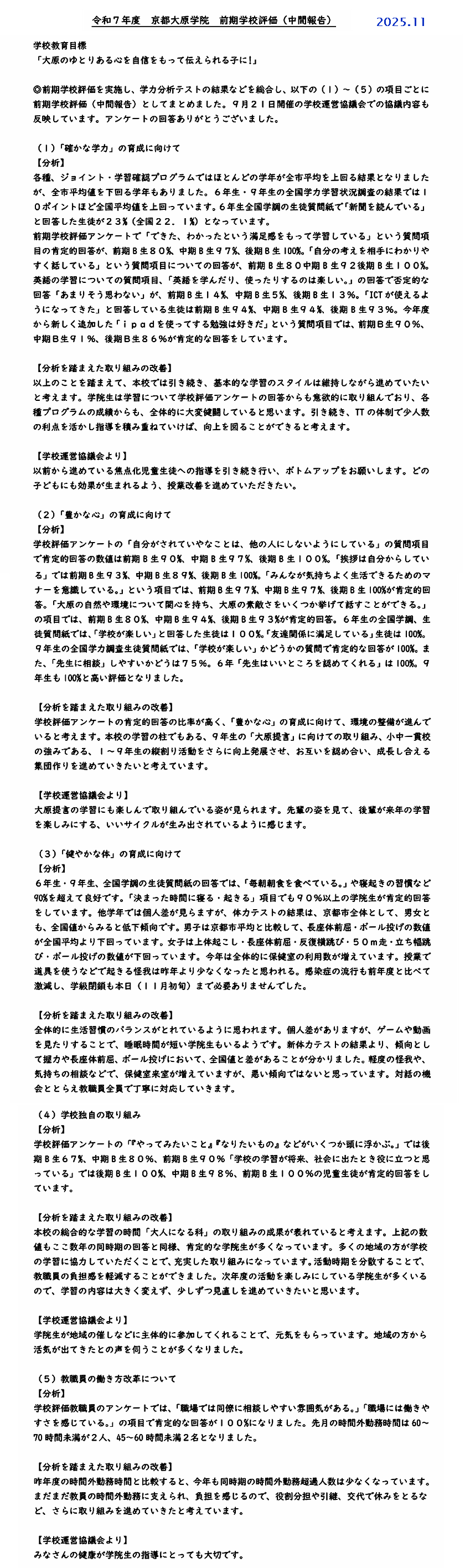 学校評価 2025年 実施