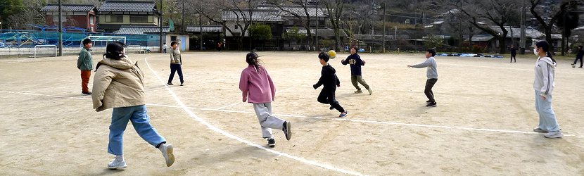 中間休みの運動場。4年生のクラスみんなで始まったのはドッジボールです。