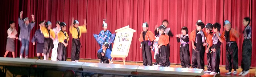 3・4年生 劇「サムライパニック」 のんびりさむらいたちのお城では事件が起きていたのです。