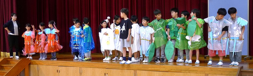 1・2年生 劇「あした天気になあれ」 明日は遠足、てるてる坊主にお願いしたけれど