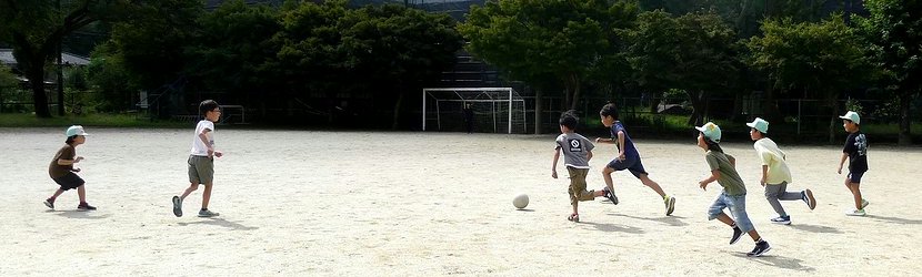 やっと涼しくなった運動場で、中間休みはサッカーです。