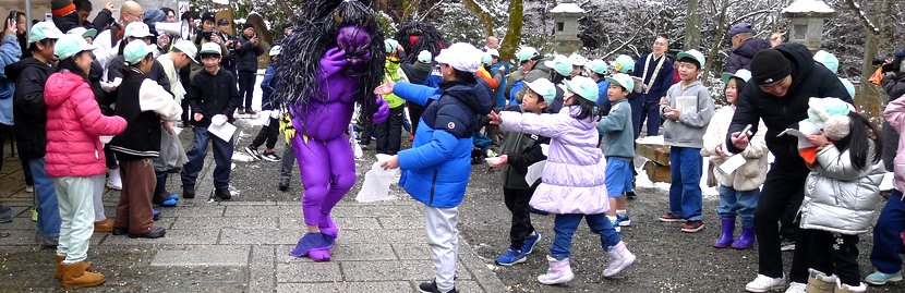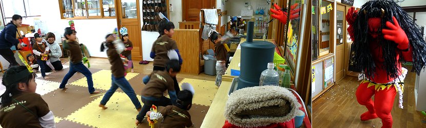 三千院での法要が終わった頃に現れた鬼は、前期ブロック(1〜4年生)の子どもたちがみんなで追い出しました。